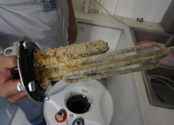 沖洗水箱:通過水箱口的真空管安裝孔,用清水反復(fù)沖洗水箱內(nèi)膽,將沉淀的水垢沖出。