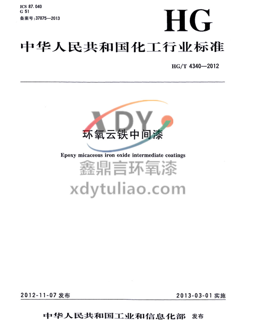 環(huán)氧云鐵中間漆化工行業(yè)標準HG/T 4340-2012