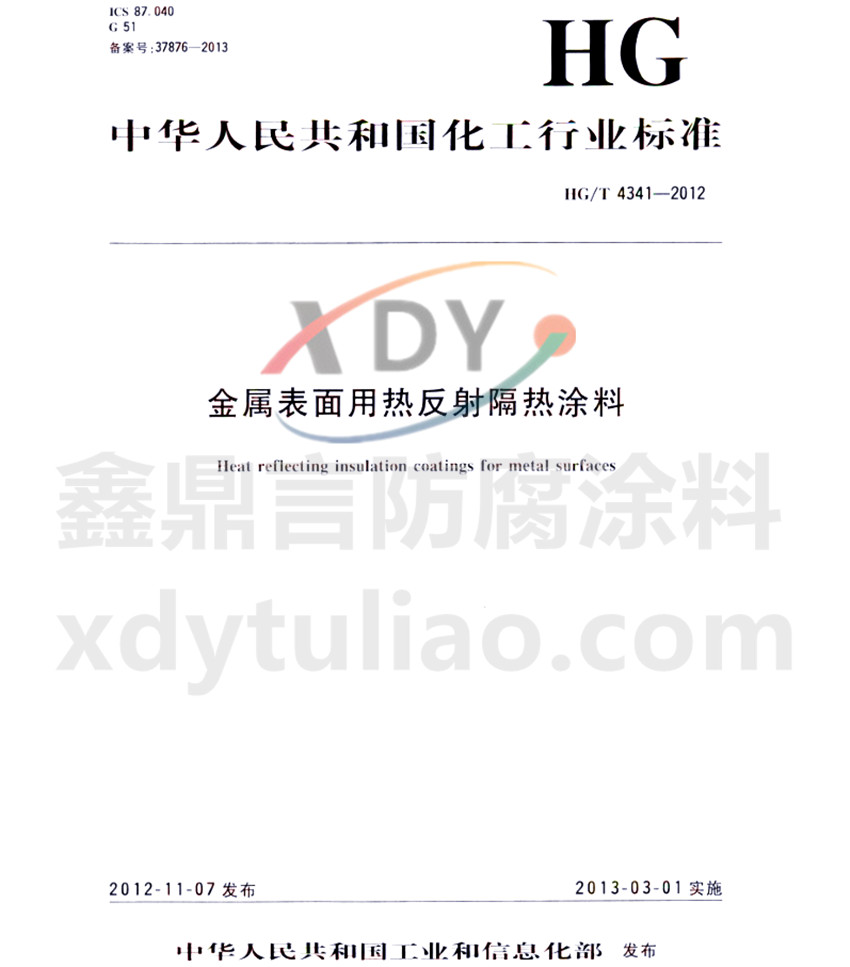 HG/T 4341-2012金屬表面用熱反射隔熱涂料標(biāo)準(zhǔn) ICS 87.040 G51 備案號(hào):37876-2013 HG 中華人民共和國(guó)化工行業(yè)標(biāo)準(zhǔn) HG/T4341-2012 金屬表面用熱反射隔熱涂料heat reflection coatings for metal surfaces 2012-11-07發(fā)布 2013-03-01實(shí)施 中華人民共和國(guó)工業(yè)和信息化部發(fā)布 本標(biāo)準(zhǔn)規(guī)定了金屬表面用